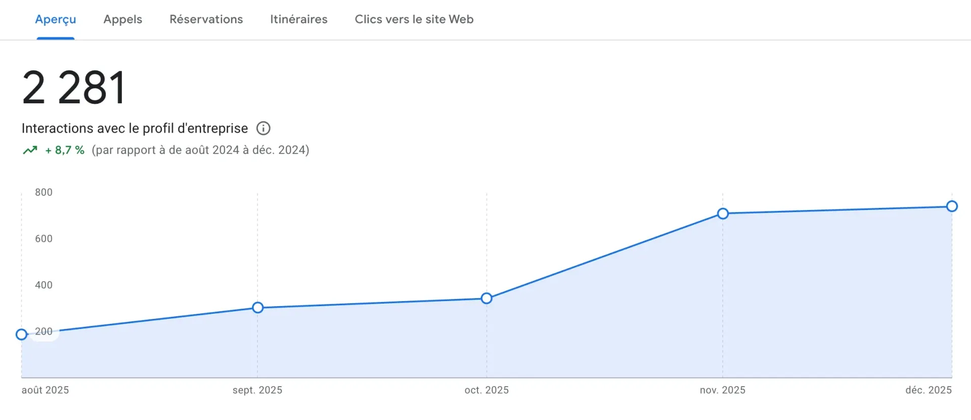 - Augmentation des appels et des visites physiques : Une fiche complète et à jour facilite l'action immédiate. Les profils optimisés génèrent beaucoup plus d'appels téléphoniques, de demandes d'itinéraire et de clics vers le site web.